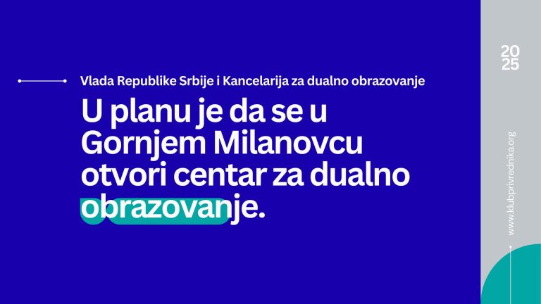 Vlada Republike Srbije i Kancelarija za dualno obrazovanje planira da u Gornjem Milanovcu otvori centar za dualno obrazovanje.